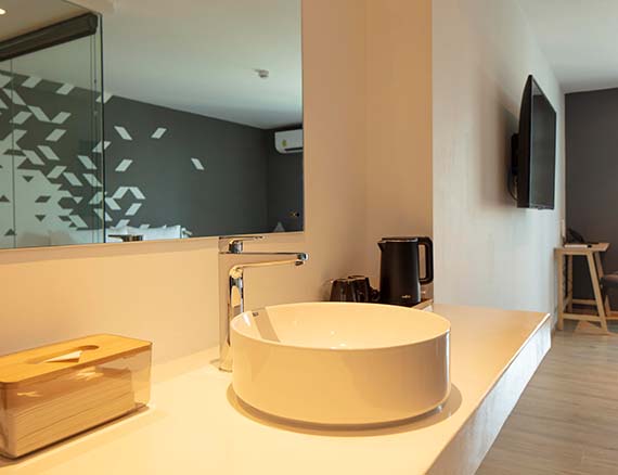 ห้องขนาด 30 ตร.ม. เป็นเตียงขนาดใหญ่สำหรับครอบครัว มีโซฟาสำหรับพักผ่อน มีห้องน้ำและห้องสุขาแยกกันเพื่อสะดวกในการใช้งาน