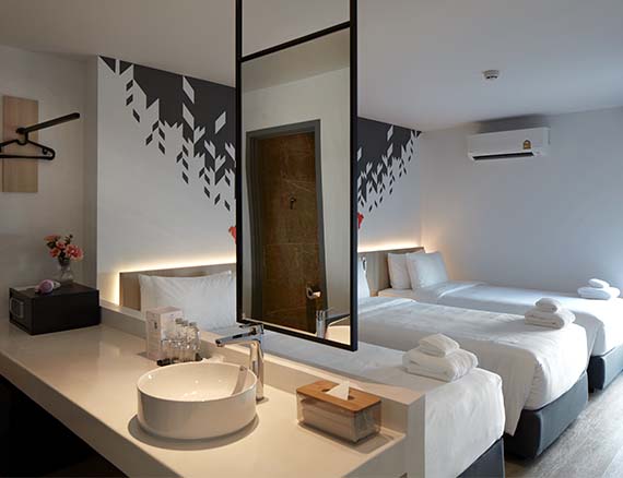 เป็นห้องราคาประหยัด สำหรับมาเป็นกลุ่ม มีเตียงแยก3 เตียง มีห้องน้ำและห้องสุขาแยกกันเพื่อความสะดวกในการใช้งาน